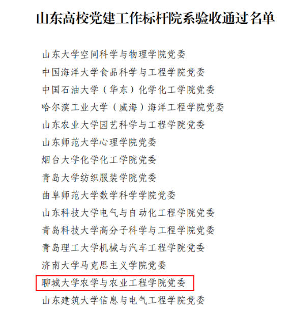 日前,山东省委教育工委公布了第二批山东高校党建“双创”培育创建工作验收通过名单,bat365中文官方网站党委(原bat365中文官方网站农学与农业工程学院党委)圆满完成“山东高校党建工作标杆院系”培育创建任务,通过验收。