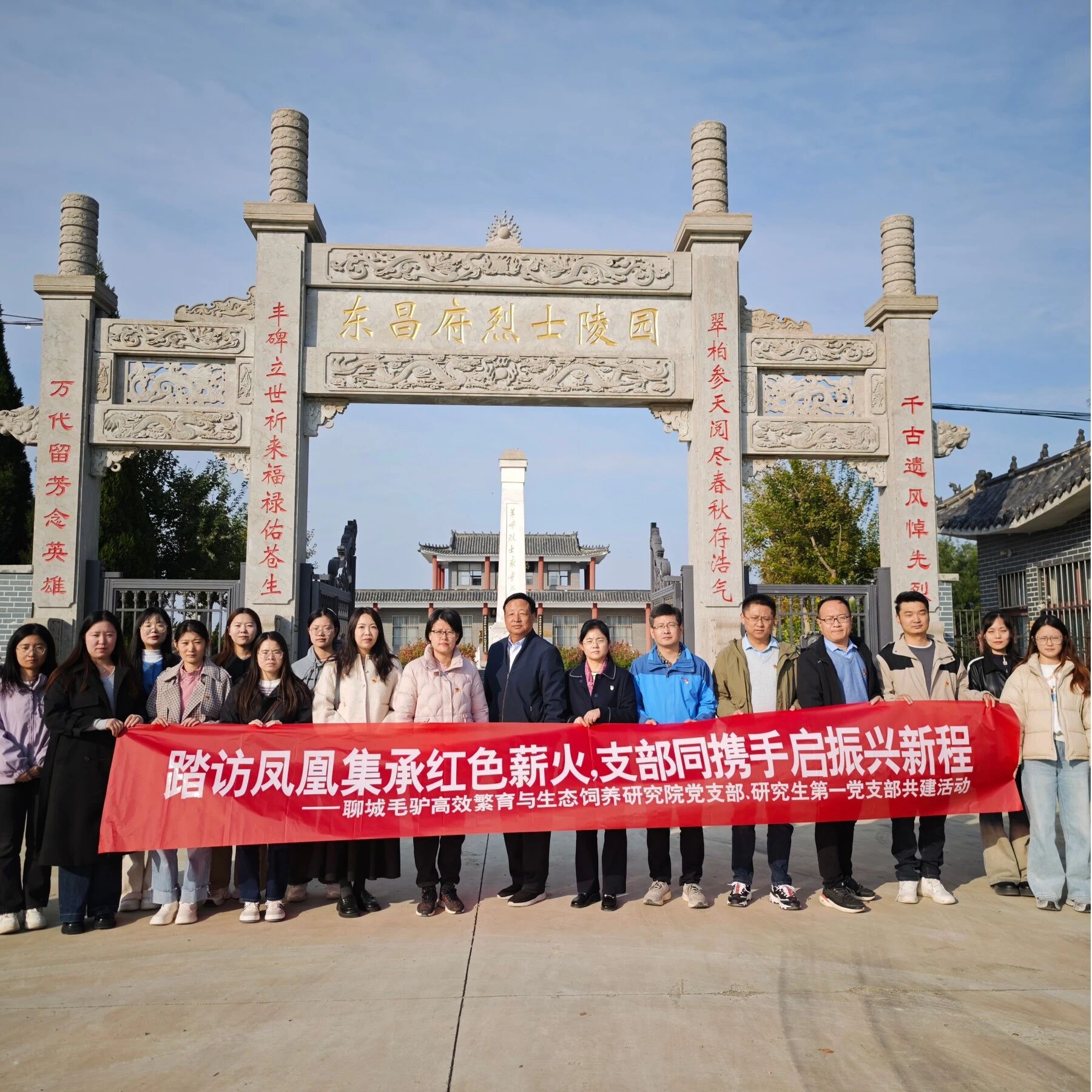 为深入挖掘红色故事,赓续革命精神血脉,让红色基因深植于心、践之于行,10月21日,bat365中文官方网站聊城毛驴高效繁育与生态饲养研究院党支部联合研究生第一党支部,组织党员代表共赴聊城市东昌府区闫寺街道凤凰集新村,开展“踏访凤凰集承红色薪火,支部同携手启振兴新程”主题共建活动。