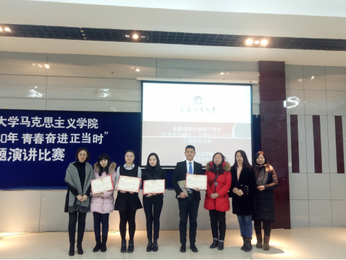 本网讯(通讯员 岳子琪)为庆祝改革开放40周年,深入学习宣传习近平新时代中国特色社会主义思想和习近平总书记全面深化改革重要思想,充分体现全面深化改革的丰硕成果,在全院营造改革创新、开放自信的浓厚氛围,2018年12月26日下午,澳门网投唯一官网在南湖校区综合楼报告厅成功举办了“改革开放40年,青春奋进正当时”主题演讲比赛。我校党委研究生工作部部长范琳琳、研工部办公室主任李林琳、澳门网投唯一官网党总支书记朱兴国、院长马光焱、副院长王晓光、院学术委员会主席程颖教授、原理教研室主任于浚湜、基础教研室主任于影、形势与政策教研室主任陈莉担任了本次比赛的评委。
