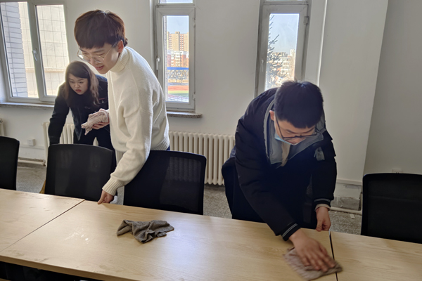 同学们发扬不怕脏、不怕累的精神,不放过任何卫生死角,打扫后的会议室、教室、自习室焕然一新,地面干净整洁、桌椅摆放有序,展现出新学期新风貌。