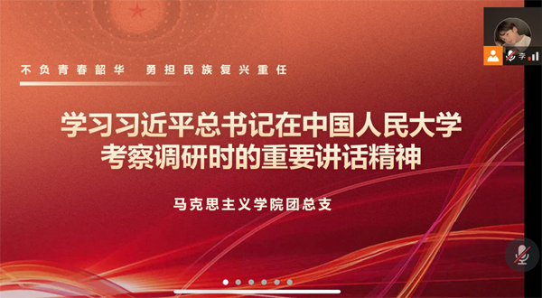 4月26日,澳门网投唯一官网团总支、研究生会、各年级团支部采用网络会议形式,学习热议总书记重要讲话精神。
