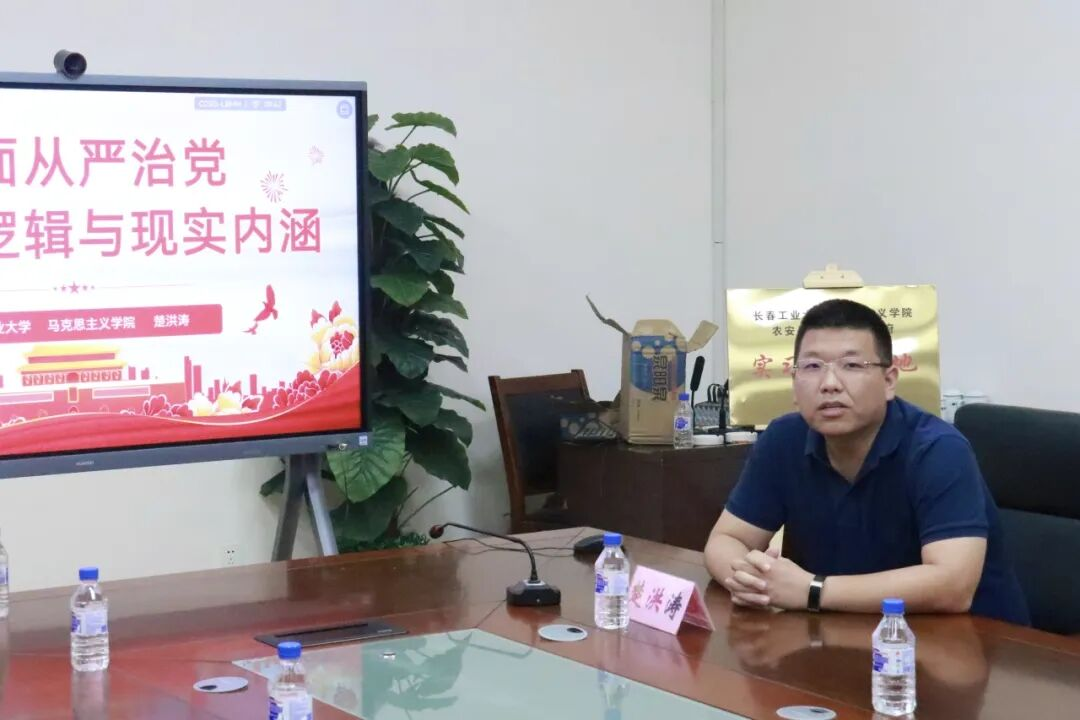 揭牌仪式后,学院中国特色社会主义理论研究中心主任楚洪涛以《党的作风纪律建设》为题作专题讲座。他结合党的二十大报告与党纪教育要求,从全面从严治党的历史逻辑与现实内涵切入,强调全面建设社会主义现代化国家、推进中华民族伟大复兴关键在党,必须持之以恒推进全面从严治党,以党的自我革命引领社会革命,为在场师生与乡镇干部上了一堂深刻的党性教育课。