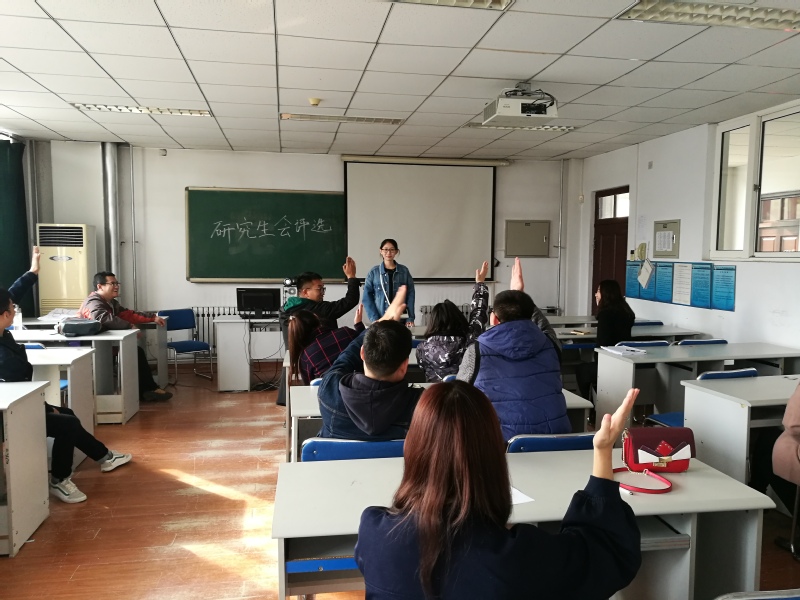 会上举行了第一届研究生会主席、副主席、组织部长、宣传部长候选人竞选演讲,投票产生了第一届研究生会成员名单,邹丹当选研究生会主席,殷晓龙当选副主席,陈影当选组织部部长,王禹情当选宣传部部长。。