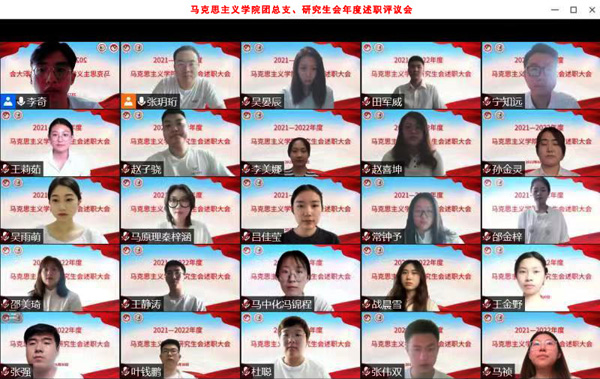 本网讯(通讯员 张伟双 张强)为全面贯彻党的十九大和十九届历次全会精神,深入学习贯彻习近平总书记在庆祝中国共产主义青年团成立100周年大会上的重要讲话精神,持续深化学生会组织改革,进一步规范研究生会述职评议工作,按照学校要求,6月30日,澳门网投唯一官网研究生会通过线上方式召开2021—2022年度述职评议会。学院党委副书记王权出席会议。