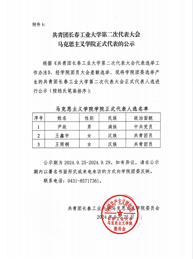 共青团澳门网投唯一官网第二次代表大会澳门网投唯一官网正式代表的公示