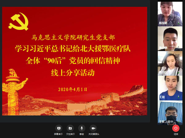 本网讯(通讯员 王权)“在新冠肺炎疫情防控斗争中,你们青年人同在一线英勇奋战的广大疫情防控人员一道,不畏艰险、冲锋在前、舍生忘死,彰显了青春的蓬勃力量,交出了合格答卷。”习近平总书记给北京大学援鄂医疗队全体“90后”党员回信,在我校澳门网投唯一官网师生党员中引发强烈反响,各党支部第一时间开展线上学习交流、热议回信精神、分享心得体会。