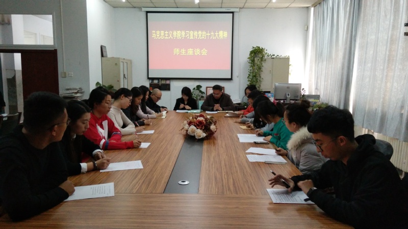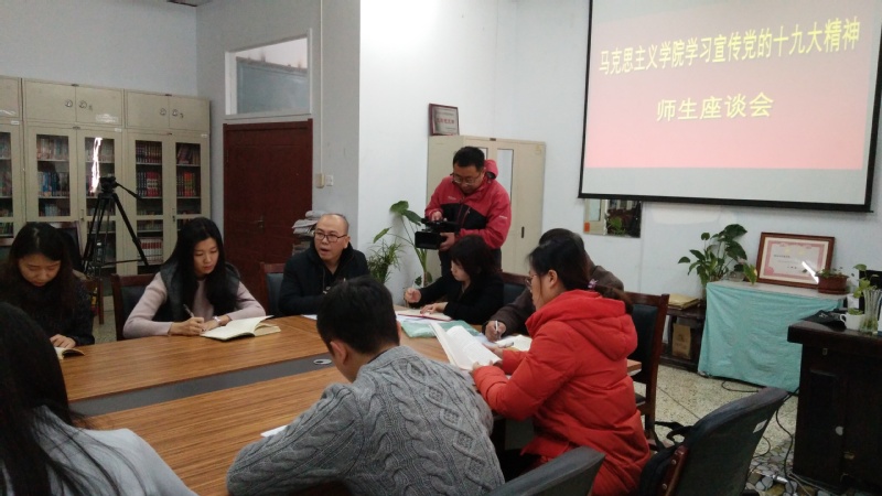 11月21日上午,澳门网投唯一官网在学院资料室举行学习宣传贯彻党的十九大精神师生座谈会。学院班子、部分教师及研究生代表参加座谈会,学院党总支书记朱兴国主持会议。