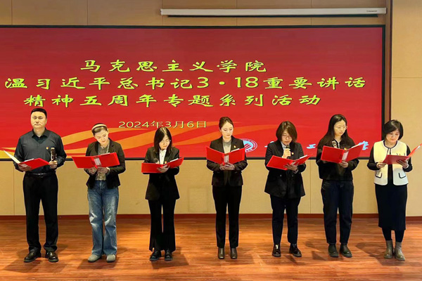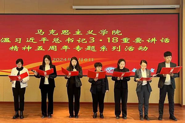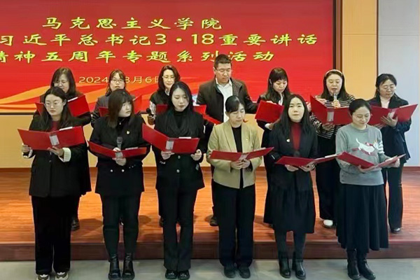 本网讯(通讯员 杨慧娇为进一步重温习近平总书记“3·18”重要讲话精神,不断增强思政课教师的红色底蕴,厚植家国情怀,3月6日,澳门网投唯一官网在综合楼报告厅开展了重温习近平总书记“3·18”重要讲话精神五周年专题系列活动之“上好思政课,当好引路人”朗诵会。活动开始前,学院全体教师集体重温了习近平总书记“3·18”重要讲话内容。
