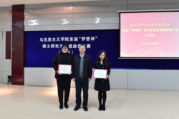 评委们针对选手的教学内容、教学方法、教学效果、教学特色和知识掌握等进行综合评分。经过角逐,2019级马克思主义中国化研究专业明彦林同学荣获大赛一等奖。与会领导为获奖学生颁发了荣誉证书。