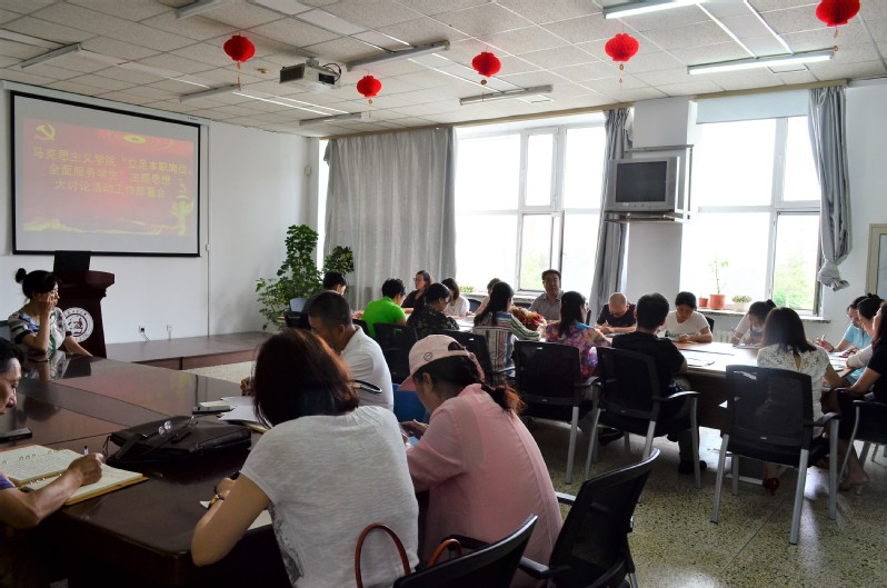 会上,朱兴国传达了学校“立足本职本岗、全面服务学生”主题思想大讨论工作会议精神,宣读了学校《关于开展“立足本职本岗、全面服务学生”主题思想大讨论活动的通知》,并就贯彻好、落实好通知精神,结合学院中心工作和教师岗位职责实际做了工作部署和动员。为扎实开展好大讨论活动,学院成立了由党总支书记、院长任组长的领导小组;制定了活动开展的路线图和时间表;明确了工作任务和具体要求,以确保大讨论活动落地生根,收到实效。朱兴国强调,全院教师要正确认识开展“立足本职本岗、全面服务学生”主题思想大讨论活动的重要性和必要性,并要求全院教师在工作中要牢固树立“以生为本”的工作理念,在提高教学技能、做好本职工作的基础上,密切联系学生,倾听学生呼声,进一步增强为学生服务的意识,提升为学生服务的本领和能力,全心全意为学生服务,实现好、维护好、发展好学生的根本利益。