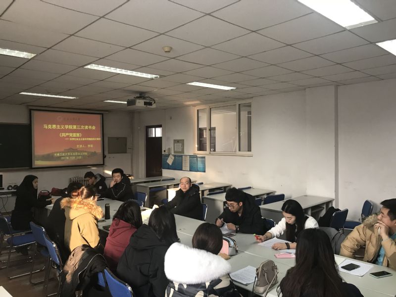 本次读书会的主讲人为澳门网投教师李军老师,主讲内容为《共产党宣言》。读书会开始后,李军老师首先要求同学们分段诵读了《共产党宣言》全文,使同学们对这部经典有了一个整体的把握。接下来李军老师通过邀请同学发言的方式了解同学们对《共产党宣言》理解程度,并为同学们仔细讲解了《共产党宣言》写作背景、主要内容、核心思想与当代价值,着重引导同学们结合其当代价值来分析和思考这一经典著作。同时要求同学们在会后研究资本论与萨缪尔森经济学的目录,比较马克思主义政治经济学与西方经济学的区别,从二者区别角度思考共产党宣言的当代价值。