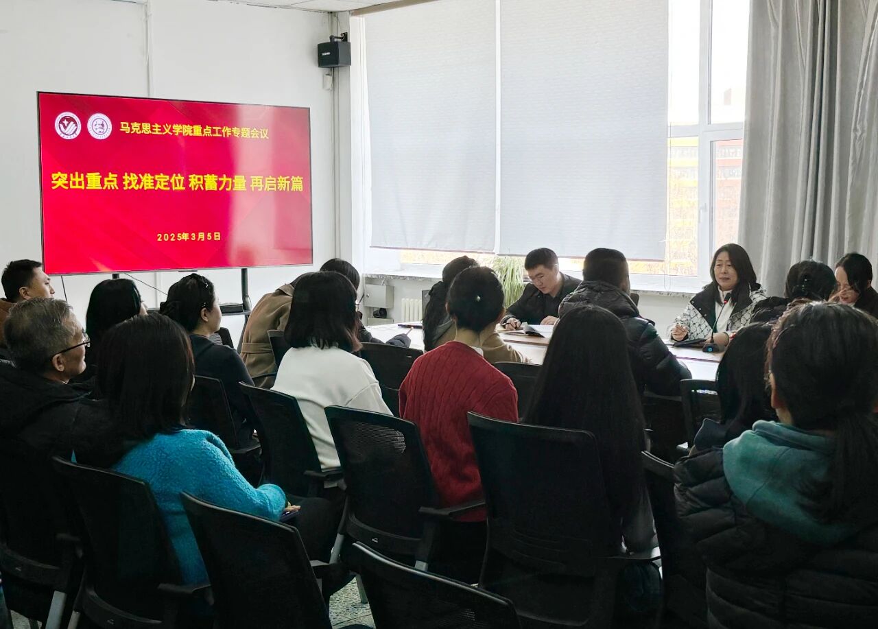 会议紧紧聚焦陈权书记调研指导精神,对新学年重点工作做出具体安排。一是要把提升教学质量放在首位,不断推进教育教学改革创新,打造有理论有情怀有温度的思政课。二是要不断优化教师队伍的年龄、学历结构,注重教师的培养培训,打造一支高素质的师资队伍。三是要立足学校办学特色和优势,凝练研究方向和科研团队,在高水平科研成果上取得突破。四是要优化研究生培养课程体系、教材体系及教学质量保障体系,注重研究生培养基础性环节和过程性考核,致力于培优人才。五是要坚持“马院姓马,在马言马”的鲜明导向和办学原则,持续打造党建特色品牌“马苑鲜声”,发挥标杆引领和辐射带动作用。