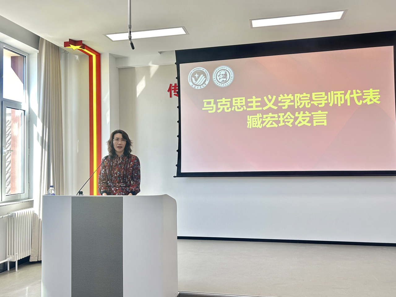 导师代表臧宏玲教授结合自己多年的教学与科研经历,热情勉励新生要树立远大志向,脚踏实地做学问,积极参与学术。