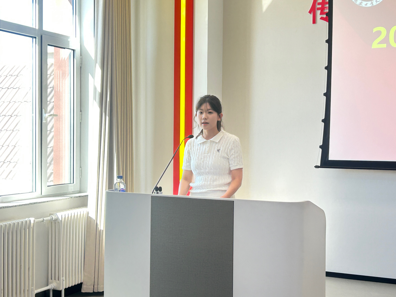 2025级新生代表李淼代表全体新生承诺,严格要求自己、提升专业素养,不辜负学院与老师的期望,与同学们携手共创美好的学术回忆。
