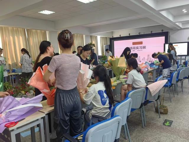 上午,老师首先对插花的基本技巧进行了详细讲解,包括花材的选择、搭配原则以及插花过程中的注意事项等。在老师的悉心指导下,大家积极动手实践,将各种鲜花巧妙地组合在一起,形成了一件件色彩斑斓、形态各异的花卉艺术品。下午,实习活动进入了花束包装的学习阶段。老师向同学们展示了多种花束包装的方法和技巧,包括纸张的选择、折叠方式以及装饰物的搭配等。大家认真听讲,积极动手实践,将自己制作的花束进行了精美的包装,使得花束更加具有观赏价值。9月10日教师节这天,同学们将亲手制作的花束送给了学院教师,表达了对老师们辛勤付出的感激之情,这不仅增强了师生之间的情感交流,也让老师们感受到了学生们的真诚和用心。