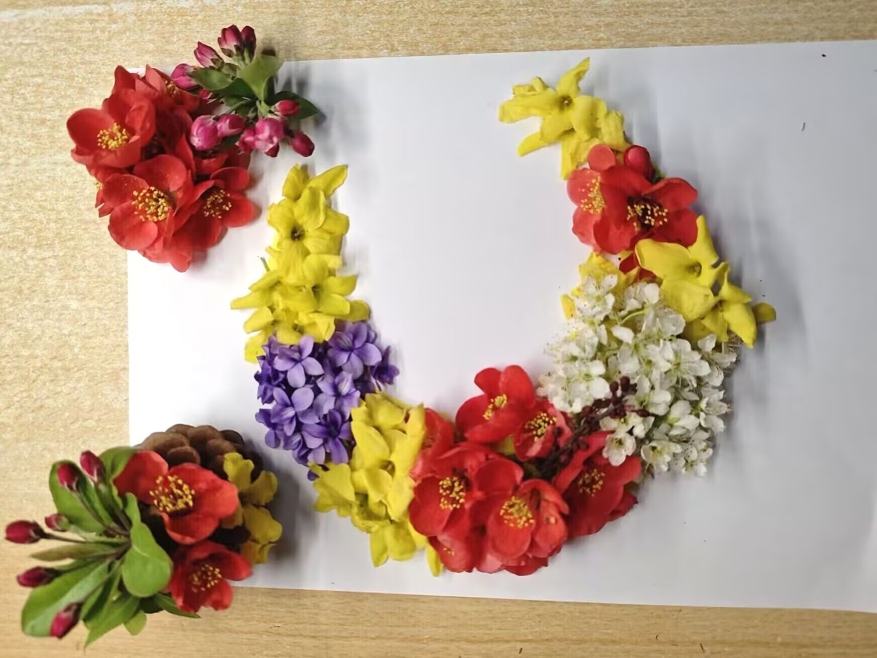 活动伊始,同学们以植物材料为主题,充分发挥想象力,在校园中寻觅形态各异的树叶和花朵开始绘制属于自己的画作。有的同学独具匠心,巧妙地利用树叶的形状,将一片银杏叶拼接成翩翩起舞的蝴蝶,用彩笔勾勒出蝴蝶的触须和斑斓的翅膀,似乎下一秒,这只蝴蝶就要挣脱纸面,飞向花丛;有的同学将枫叶拼成了一幅秋日山林图,火红的枫叶层层叠叠,让人感受到秋天的热烈与浪漫,仿佛踏入一片诗意山林;还有的同学用花瓣和草茎组合成了一个梦幻的花园,油墨的点缀让花朵更加娇艳欲滴,充满了艺术的质感,凑近看,每片花瓣的纹理都清晰可见,像是藏着一个微观仙境。同学们天马行空的想象将植物赋予了新的生命和意义,一幅幅画作展现了同学们对自然的热爱,对美好生活的向往,以及同学们对人与自然和谐共生理念的理解。每一幅画都像是一个小小的故事,诉说着同学们内心深处的情感。