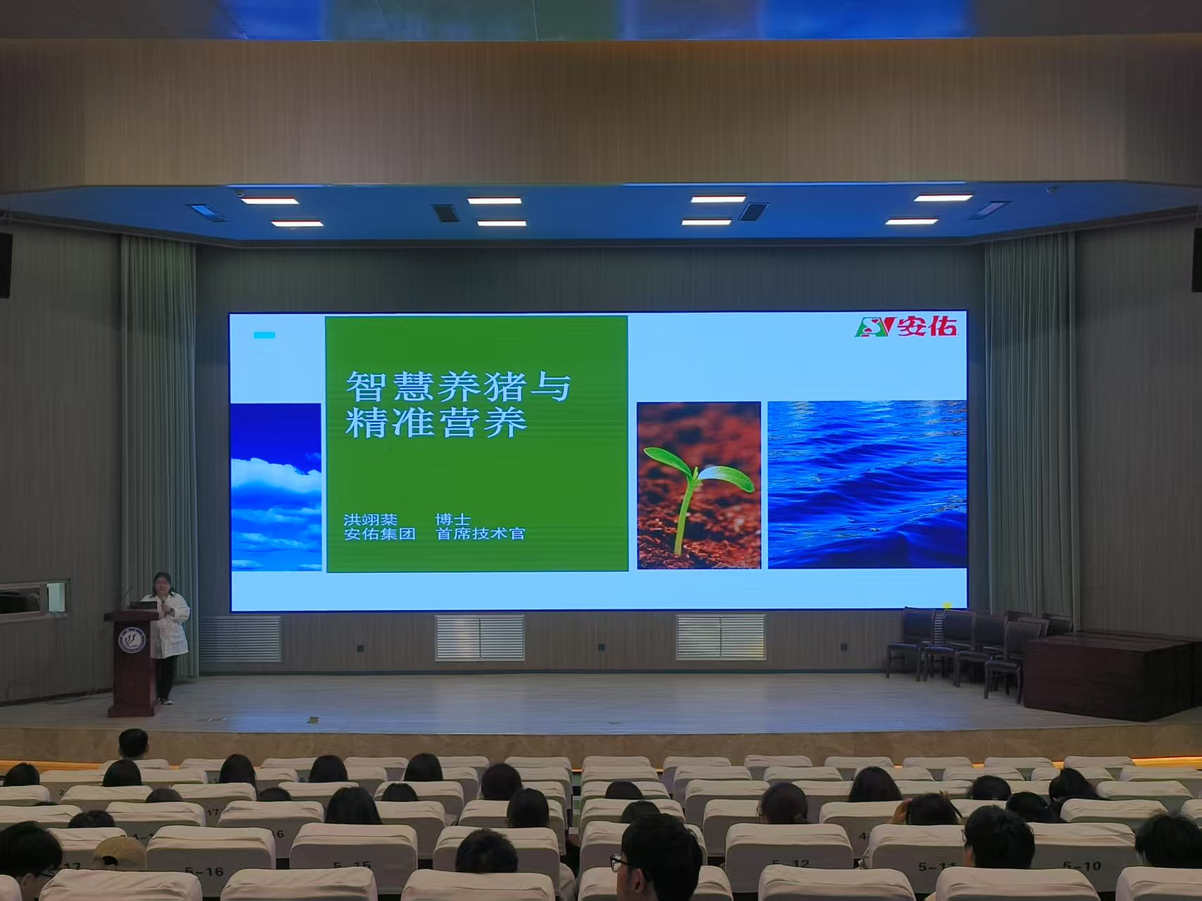 为深化校企合作,4月21日,bat365中文官方网站于实训楼报告厅举办“智能养猪及精准养殖”主题讲座活动。安佑生物科技集团股份有限公司首席技术官洪翊棻担任主讲嘉宾。