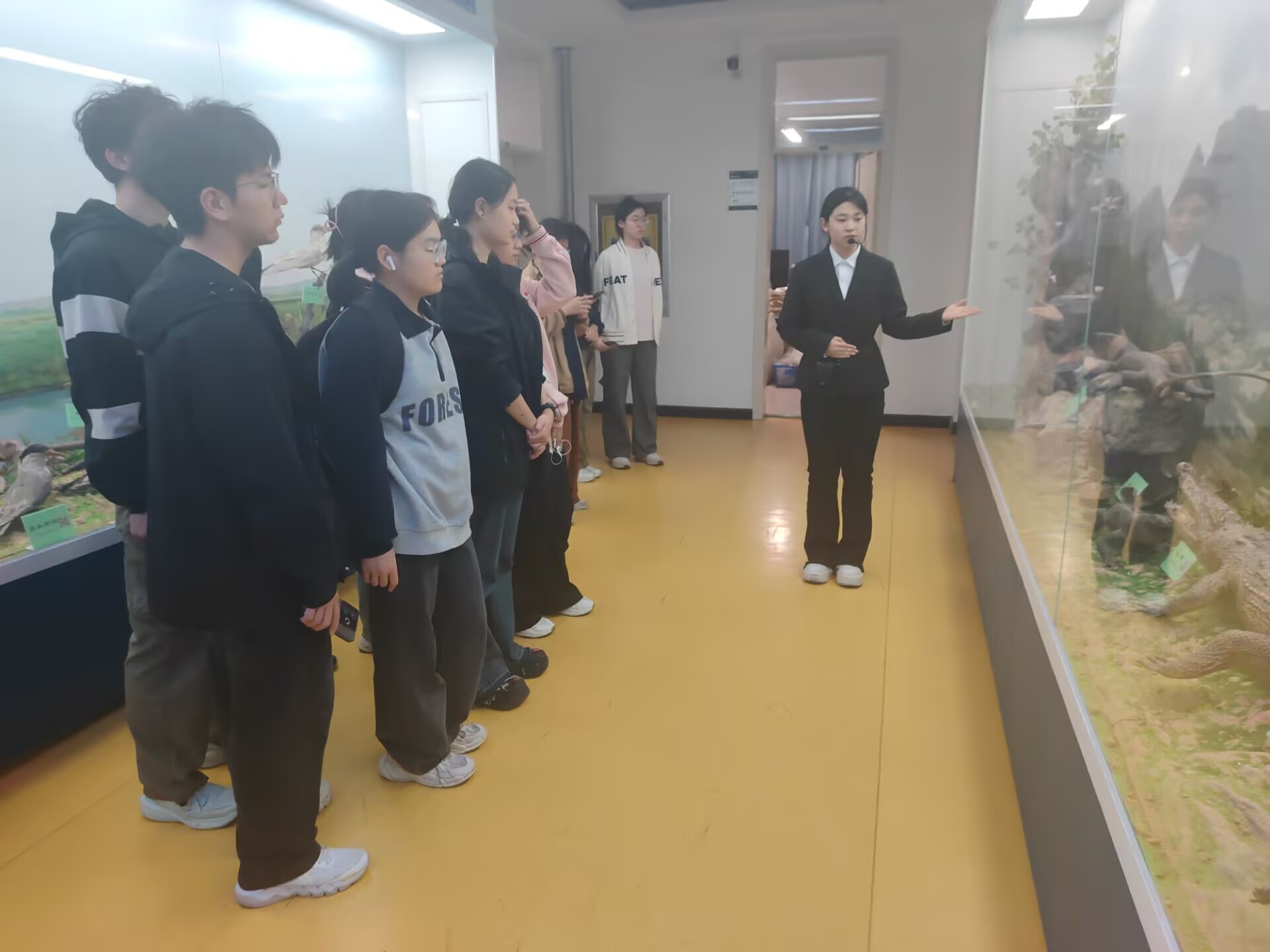 活动伊始,同学们陆续来到标本馆,在讲解员的带领下,同学们沿着规划路线进行全面参观与深入讲解。昆虫标本展区无疑是最吸引人的地方。这些标本涵盖了众多昆虫种类,每一个都像是大自然精心雕琢的艺术品。五彩斑斓的蝴蝶标本,展开翅膀仿佛下一秒就要翩翩起舞;形态各异的甲虫标本,坚硬的外壳闪烁着独特的光泽。讲解员详细地介绍了昆虫的发育过程,从卵到幼虫,再到蛹,最后羽化为成虫,每一个阶段都充满了神奇的变化 ,这让大家对昆虫的生命历程有了更深入的认识。