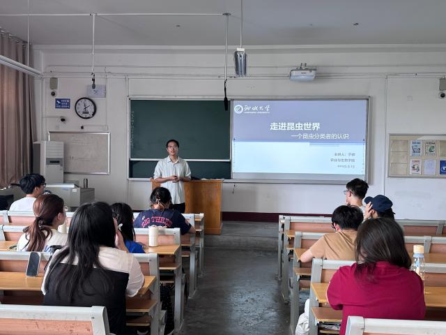 为激发青年学子对自然科学的探索热情,培育生命敬畏意识与生态保护责任感,5月15日,bat365中文官方网站生物践行者协会于东校区2号教学楼509教室举办“博雅大讲堂:走进昆虫世界”主题活动,bat365中文官方网站于帅老师担任主讲,带领同学们深入探索昆虫世界的奥秘,感受生命的奇妙与自然的和谐。