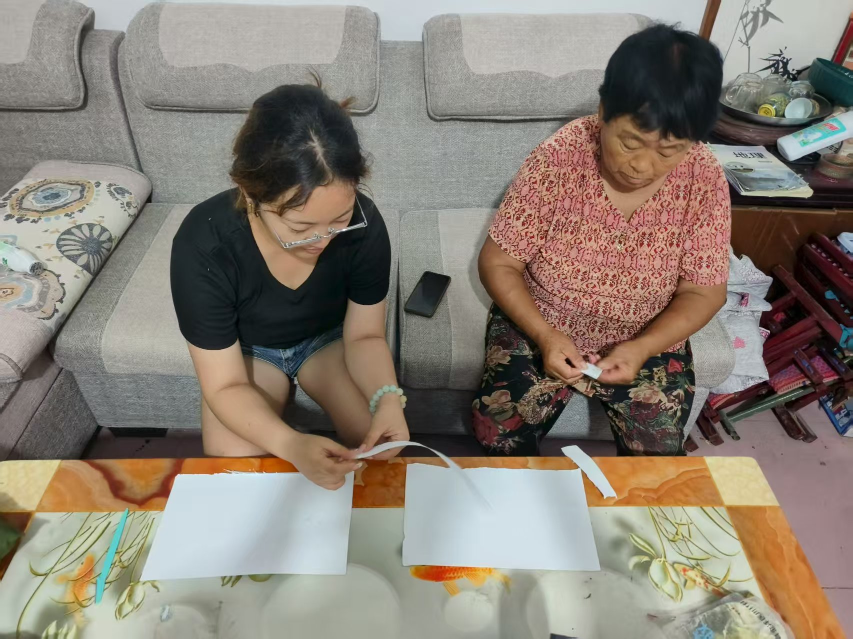 实践期间,“知行助老”服务队分别前往各市区的敬老院与老年公寓开展服务。志愿者提前备好适合老年人食用的水果、牛奶及生活用品,并准备了折纸、编织等手工材料——既为丰富老人日常生活,也希望通过动手互动为他们的日常增添一份趣味与活力。服务中,志愿者分组行动:或走进社区老人家中,陪老人聊天谈心以倾听其情感需求,同时帮忙整理房间、打扫卫生;或在敬老院开展手工课程,手把手教老人折纸、编织,完成的作品则作为纪念赠予老人。此外,有特长的志愿者还为老人表演唱老歌、朗诵诗词等简易文艺节目,并热情邀请老人参与互动,现场氛围温馨活跃。活动尾声,服务队将收集的活动照片、视频整理成纪念册与短视频,赠送给老人及家属,为这段时光留存美好回忆。参与志愿者纷纷表示,此次实践让他们深刻意识到关注老年人精神与物质需求的重要性,未来在学习和工作中,将持续关注老年群体,助力老人安享晚年。