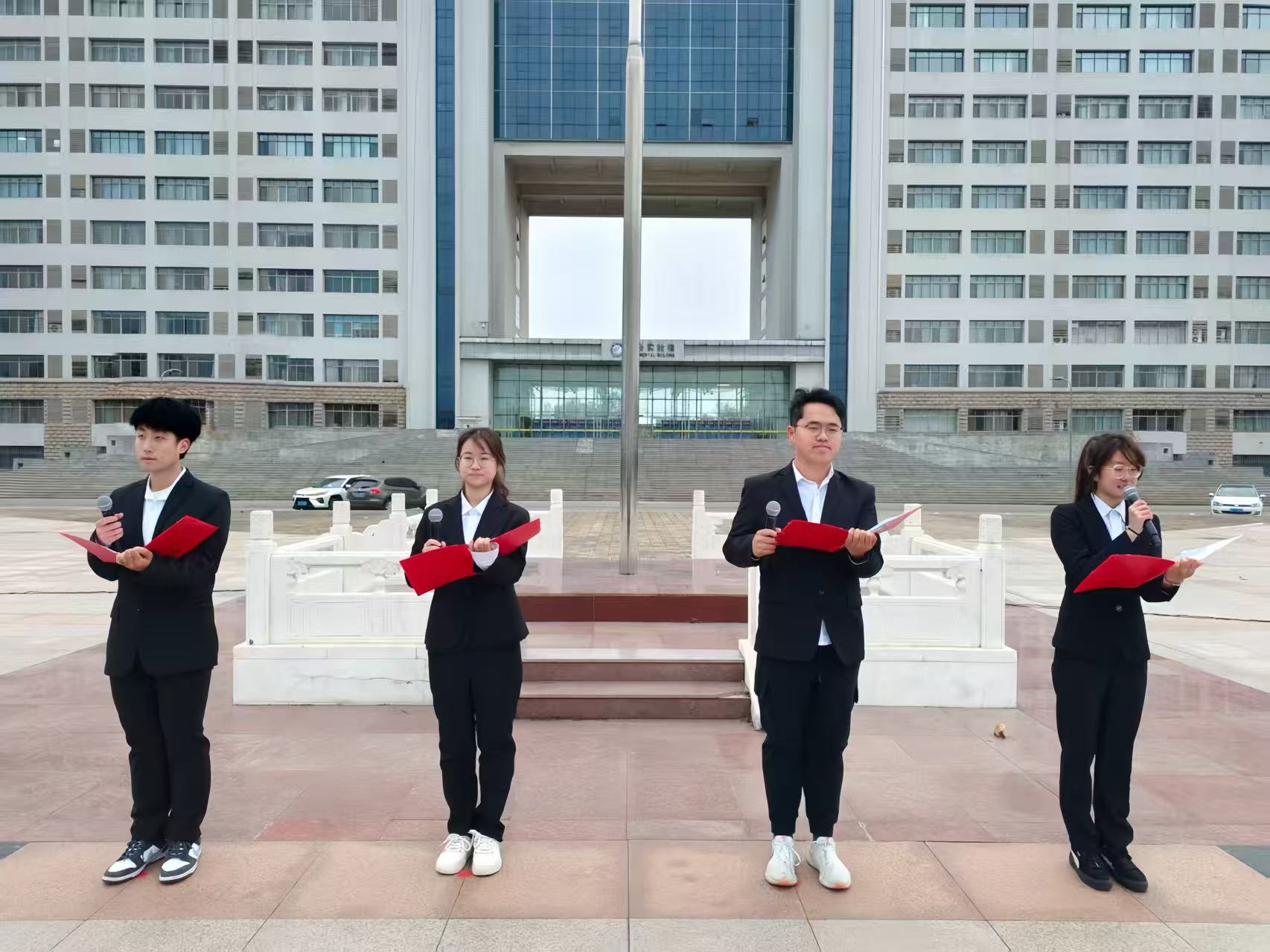 活动最后,学院朗诵团带来朗诵《红旗领航启新程,青春逐梦赴韶华》。成员们精神饱满、声情并茂,以铿锵有力和饱含深情的表达,抒发了对祖国母亲的无限热爱,展现出青年一代赓续红色血脉、勇担时代重任的坚定决心。真挚的情感与激昂的语调感染了现场的每一位同学,为本次升旗仪式画上了圆满句号。