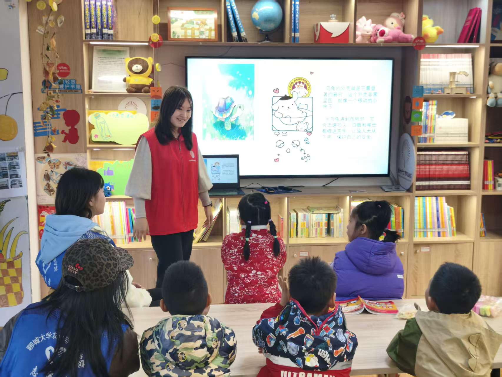活动伊始,志愿者以趣味互动问答开篇,用通俗易懂的语言引出有关动物主题,结合猫狗、兔子、鸟类、鱼类等常见动物,细致讲解心脏、肺部、翅膀、鱼鳃等关键器官的构造与功能。穿插“小鸟靠什么飞行”“小鱼怎么呼吸”等趣味提问,引导孩子们主动举手回应,快速点燃大家对生物知识的探索兴趣。