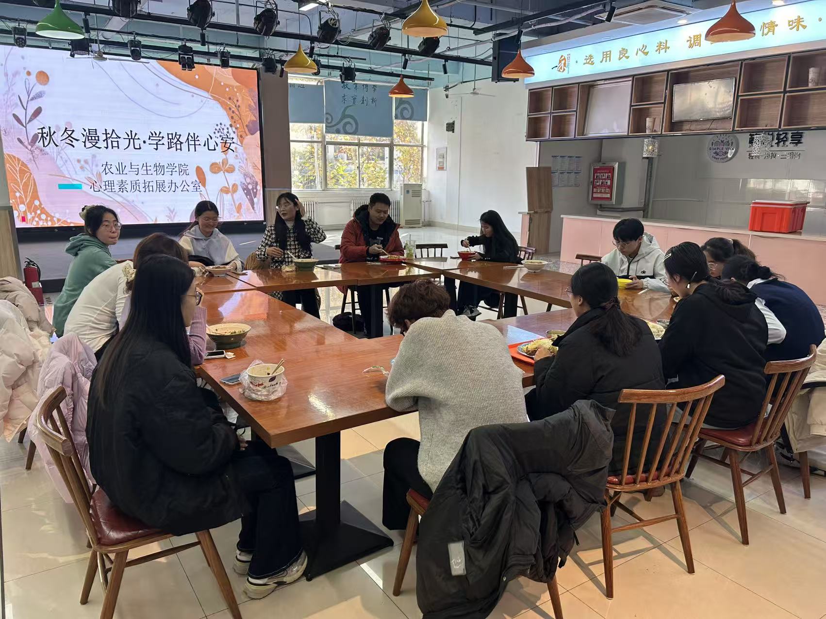 为进一步深化学风建设,筑牢学生心理健康防线,11月21日,bat365中文官方网站于bat365中文官方网站东校区翰苑餐厅二楼举办“秋冬漫拾光·学路伴心安”主题餐厅沙龙活动。bat365中文官方网站心理辅导员管玉静出席本次活动。