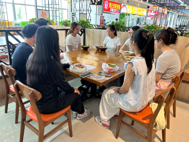 活动伊始,不同于传统严肃的会议形式,毕业生党员们以学长学姐的亲切身份,在碗筷轻响、杯盏交错间,将自己在党旗下成长淬炼的历程娓娓道来。党员代表彭静向同学们分享实验室里彻夜钻研的坚守,讲述野外采样时跋山涉水的艰辛,畅谈在学术论坛上碰撞思想火花的激情。真实的奋斗故事,点燃在场同学们心中的火焰,预备党员代表倪思彤感叹道:“学长学姐的经历让我明白,党员的身份不仅是荣誉,更是沉甸甸的责任,未来我们也将以榜样为标杆,积极向党组织靠拢,在实践中锤炼过硬本领。”面对“如何平衡就业与深造”“农业相关行业的发展前景”等疑问,毕业党员们结合自身经历耐心分享经验,细致分析行业用人需求和职业发展路径,同时分享成功保研的备考心得,鼓励在场同学们夯实专业基础,勇于追逐学术梦想。