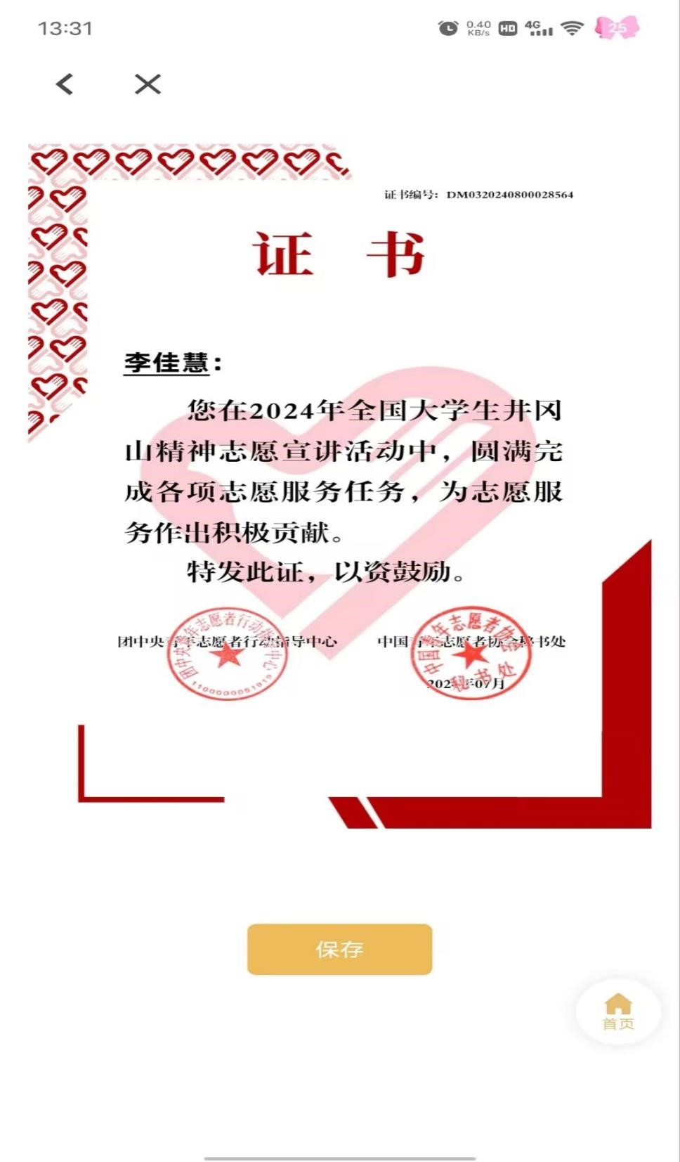 bat365官网李佳慧同学在2024年全国大学生井冈山精神志愿宣讲表现优秀,对该同学予以祝贺表彰。