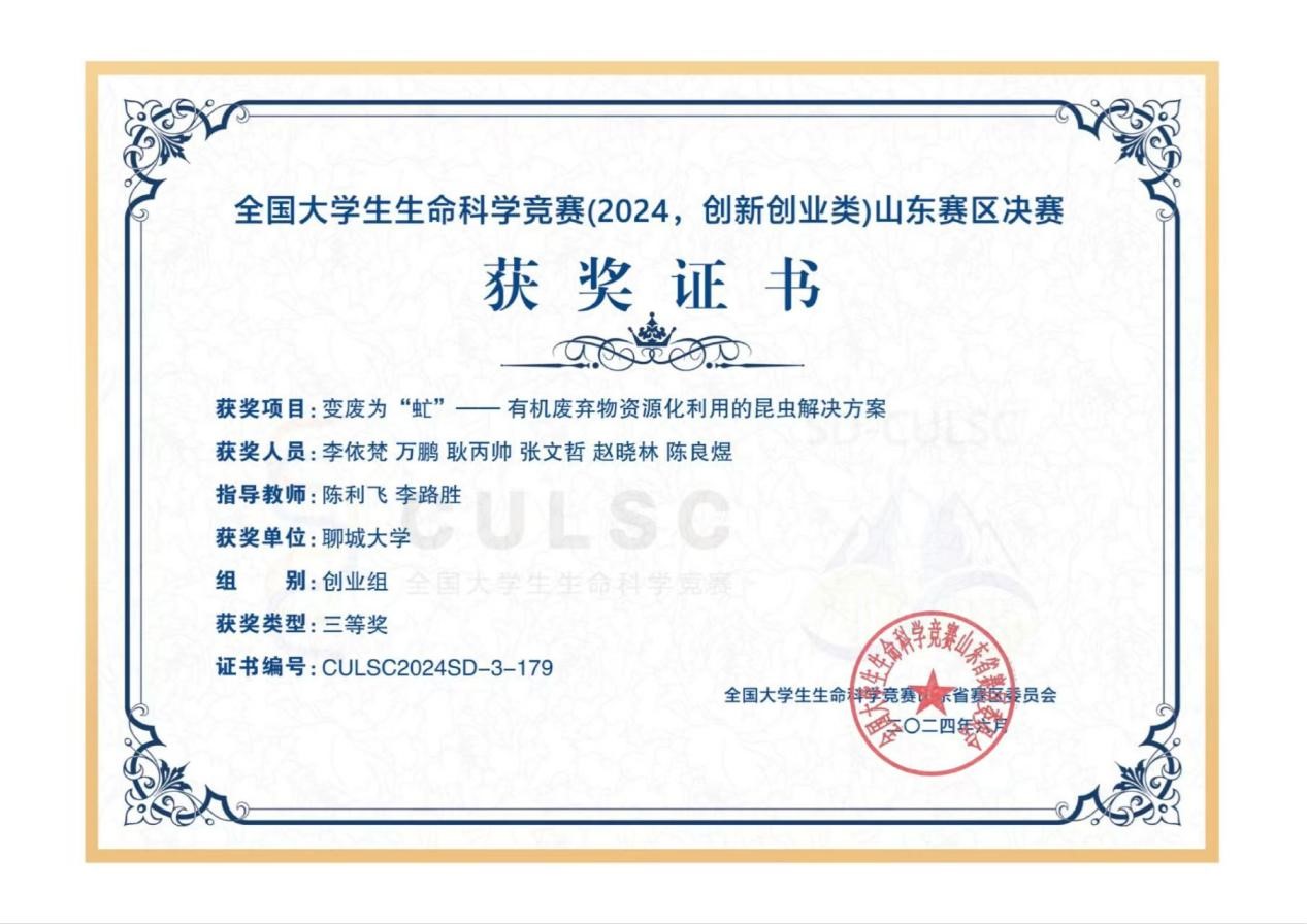 bat365官网李依梵同学在全国大学生生命科学竞赛(2024,创新创业类)山东省赛区决赛中荣获三等奖,对该获奖同学予以祝贺表彰。