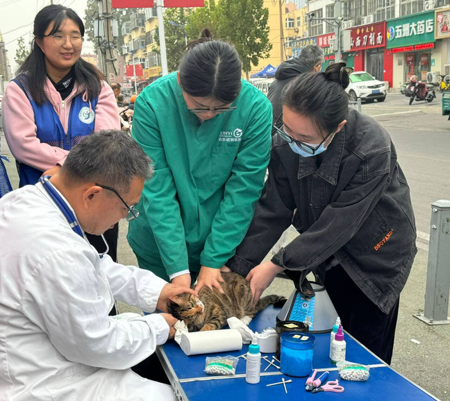 提高社区居民对宠物健康知识的了解,强化受助学生励志感恩意识,10月25日,bat365中文官方网站部分受助学生于育新社区举办“宠物义诊暖人心”志愿公益活动。