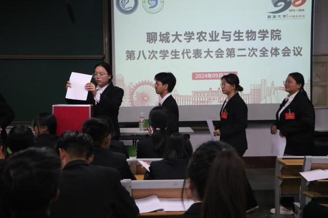 大会宣读并审议通过《bat365中文官方网站学生会工作报告》及《聊城大bat365中文官方网站学生会章程修正案》。最后,学生代表进行现场投票,本着公平、公正的原则,选出了bat365中文官方网站2025届学生会轮值主席团成员及参加bat365中文官方网站第十次学生代表大会代表,逯海凤、孙梦杰、马光玉为新一届学生会主席团成员。会议最后,王艺桦宣读《致全院青年学生的倡议书》,号召学院学生会全体同学要秉承“耕智尚学,生科致远”的院训,奋力书写为中国式现代化挺膺担当的青春篇章。在圆满完成各项议程后,大会在校歌中落幕。